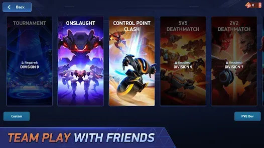 Each game mode requires different tactics and skills. Shoot your shot in the every-mech-for-itself combat of Free-For-All. Master the battlefield with Control Point Clash and enjoy fighting with your team in Deathmatch. Set up custom PvP games for your friends if you want to play by your own rules.