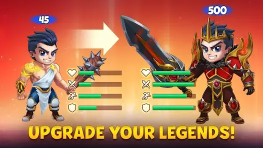 Battle enemies, collect heroes, unlock new powers and skills, and level them up. Achieve victory in war and secure your place among the legendary heroes.