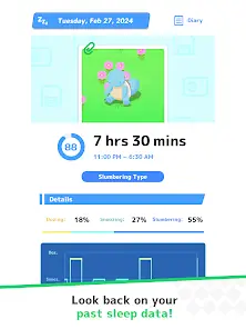 It’s time to track your sleep! All you need to do is place your smart device by your pillow (don’t place your device under your pillow or blankets as it may overheat), then call it a night. You can also play using sleep data tracked via your smartwatch.